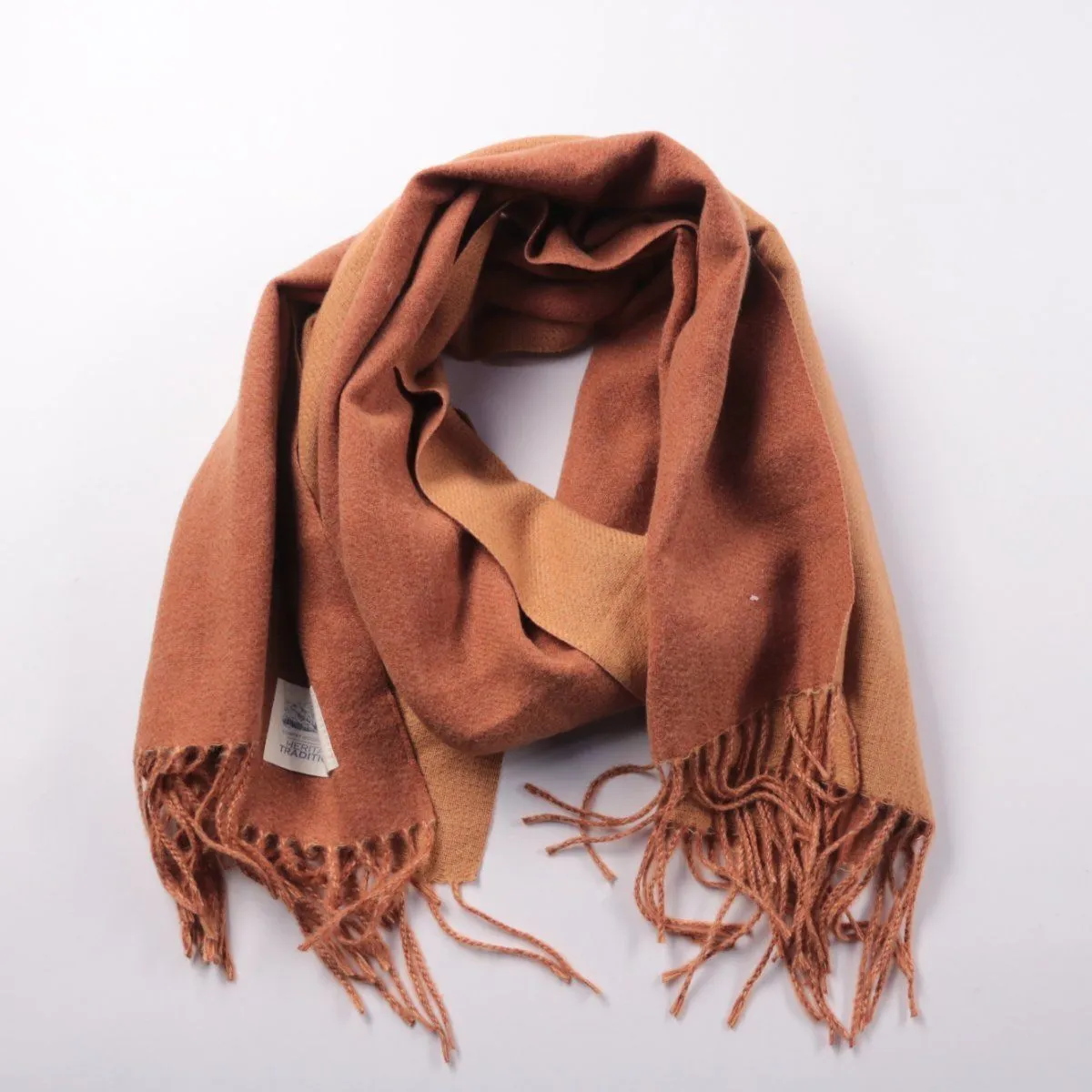 Шарф Heritage Traditions в коричневом цвете с бахромой. Подойдёт для прохладной погоды осенью и весной и легко сочетается с пальто или курткой. Длинный формат удобно драпируется и хорошо защищает шею от ветра.