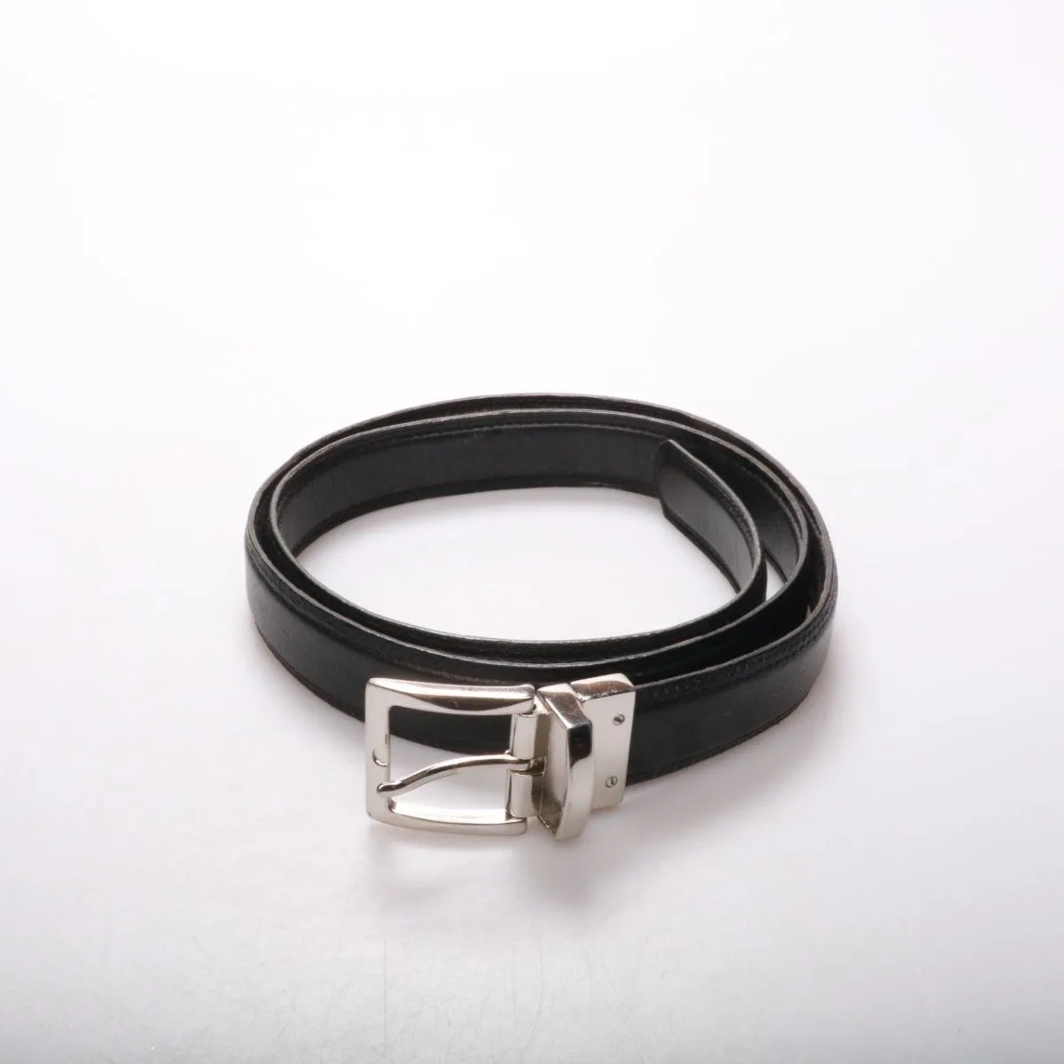 Чёрный ремень классического типа с металлической пряжкой, подойдёт для брюк и джинсов на каждый день. Универсальный дизайн легко сочетается с деловым и повседневным гардеробом. Практичен: прочная пряжка надёжно фиксирует ремень и удобно регулируется по отверстиям.