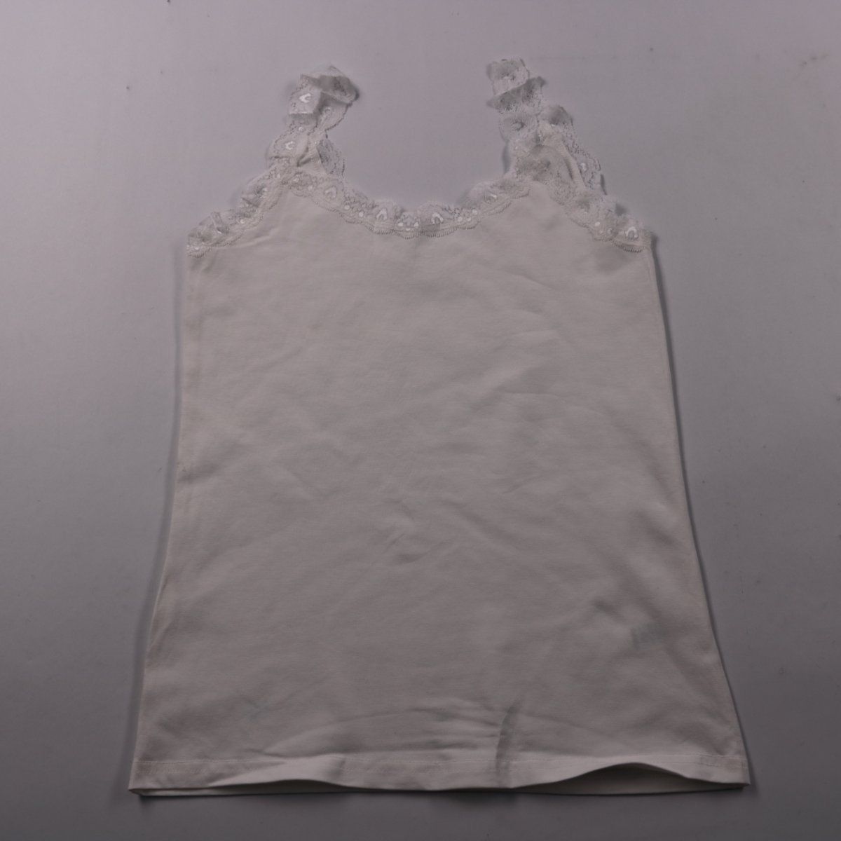 Детская майка George белого цвета на тонких бретелях с кружевной отделкой. Подойдёт девочке 8–10 лет для повседневной носки как бельё под школьную форму или на каждый день. Хлопковая ткань с добавлением эластана хорошо тянется и комфортно сидит.