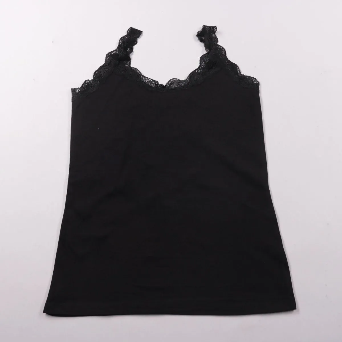 Чёрная сорочка George с кружевными бретелями и отделкой по верху. Подойдёт для сна или как нижний слой под одежду в прохладное время. Мягкий хлопковый трикотаж со стрейчем хорошо тянется и удобно сидит.