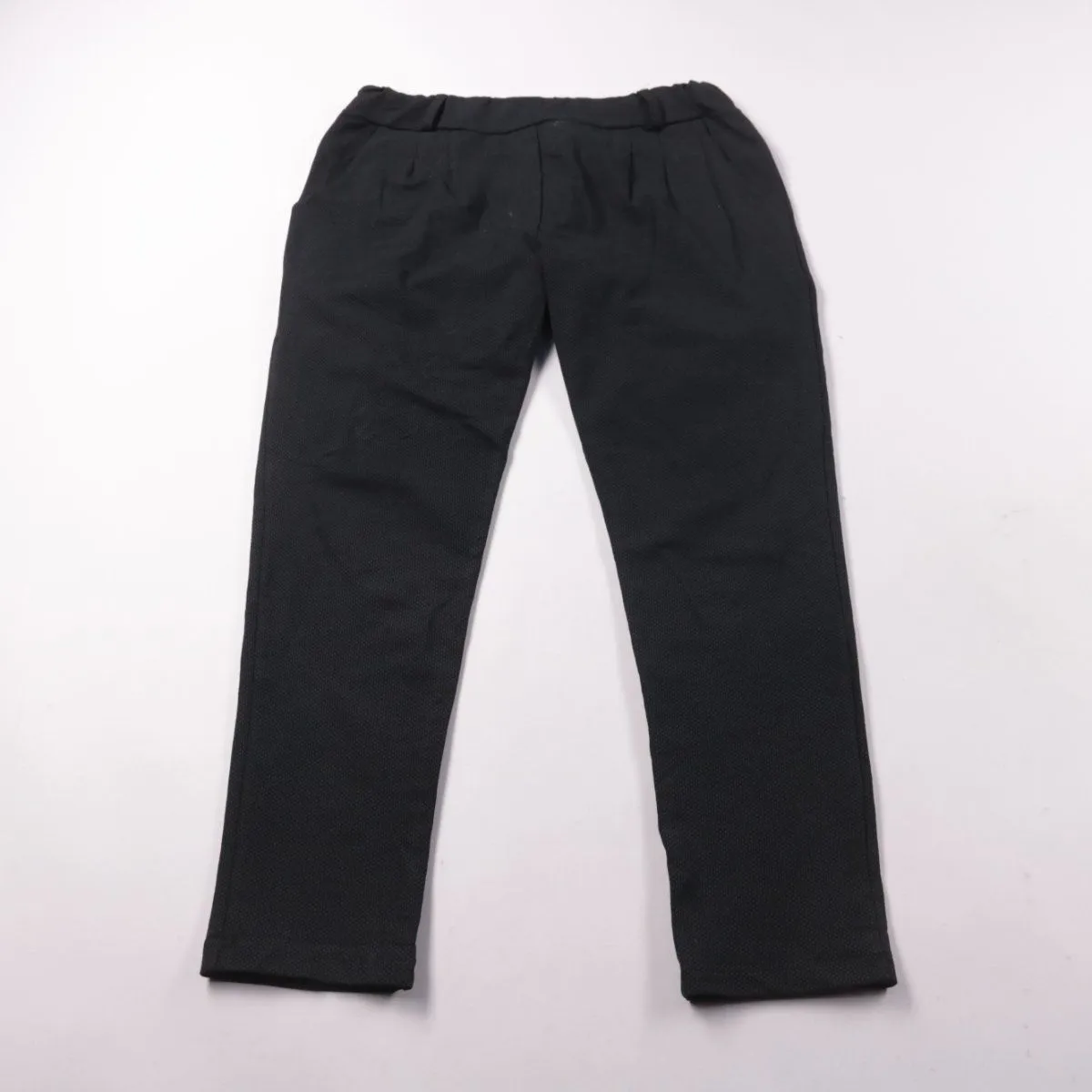 Чёрные брюки для девочки из хлопка с добавлением эластана, с карманами и эластичным поясом. Подойдут для школы и повседневной носки в любое время года. Ткань тянется и не сковывает движения.