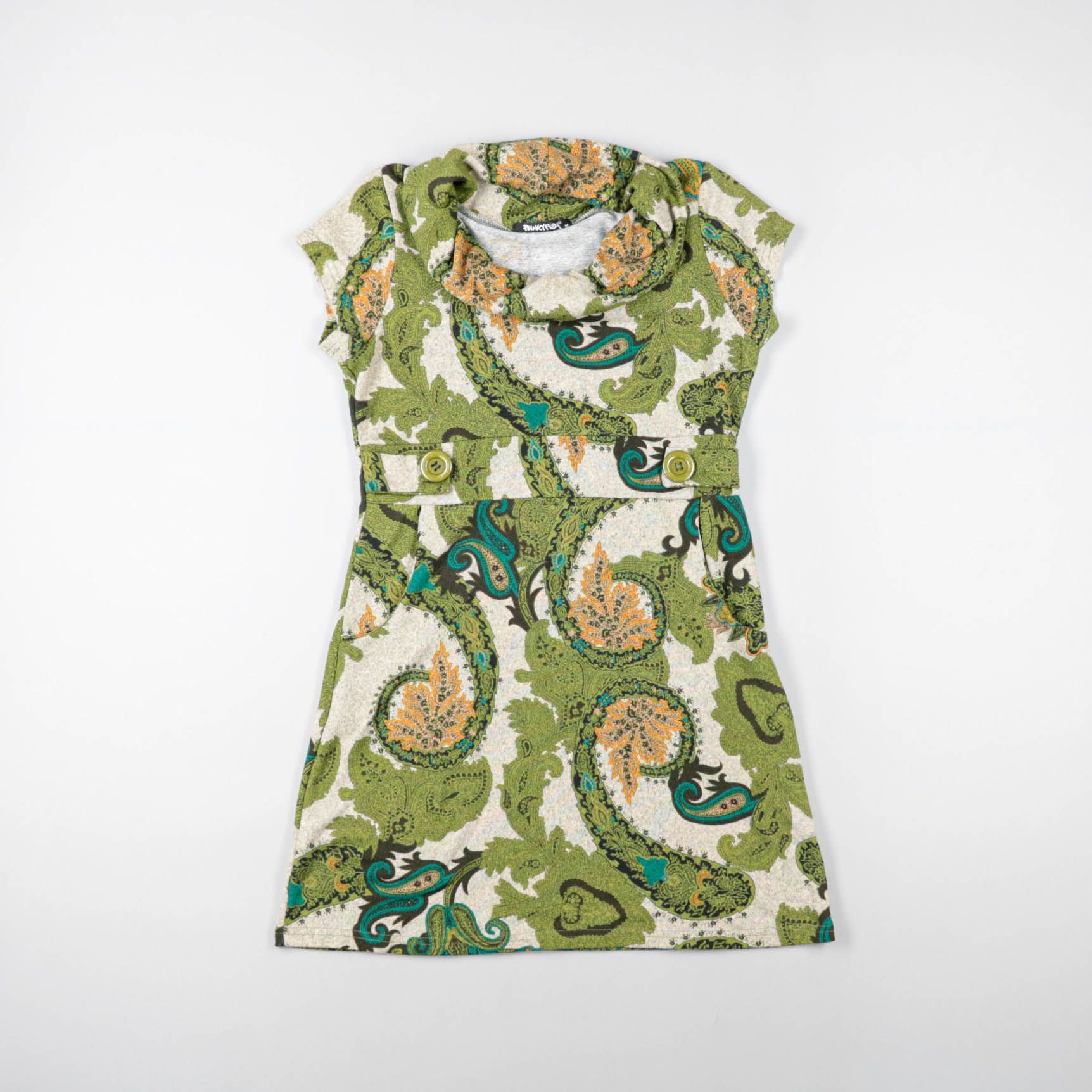 Платье Mango для девочки с коротким рукавом и пейсли-принтом в зелёно-бирюзовых тонах. Подойдёт для прогулок и праздников в тёплую погоду. Удобно тем, что лёгкое и не стесняет движения.