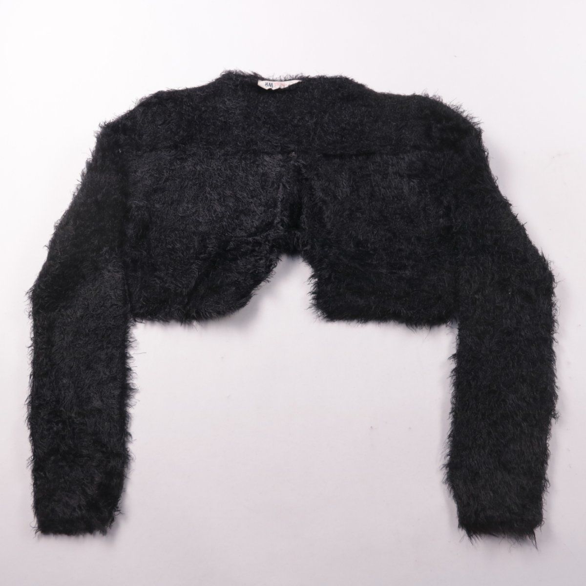 Детское болеро H&M из пушистой пряжи, укороченная модель с длинными рукавами. Подойдёт для школы и праздников поверх платья или топа в прохладную погоду. Лёгкое и быстро надевается, не сковывает движения.