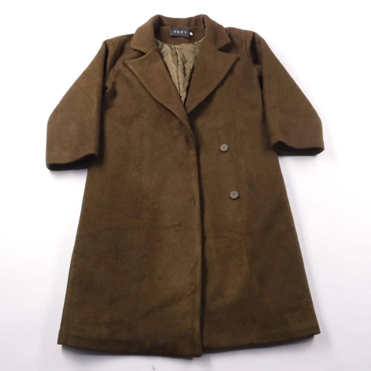 Демисезонное пальто JNBY коричневого цвета с двубортной застёжкой и отложным воротником. Подойдёт для прогулок в прохладную погоду и на каждый день, легко сочетается со школьными и повседневными образами. Практично тем, что плотная ткань держит форму и защищает от ветра.