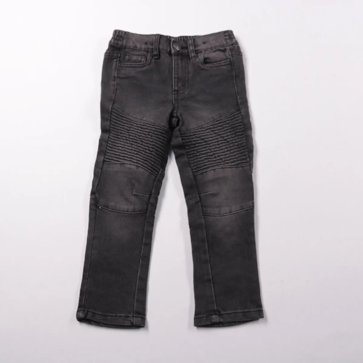 Джинсы Kiki&Koko тёмно-серого цвета с рельефными вставками на коленях. Подойдут мальчику на каждый день, для прогулок и активных игр. Плотный деним со стрейчем лучше садится по фигуре и не сковывает движения.