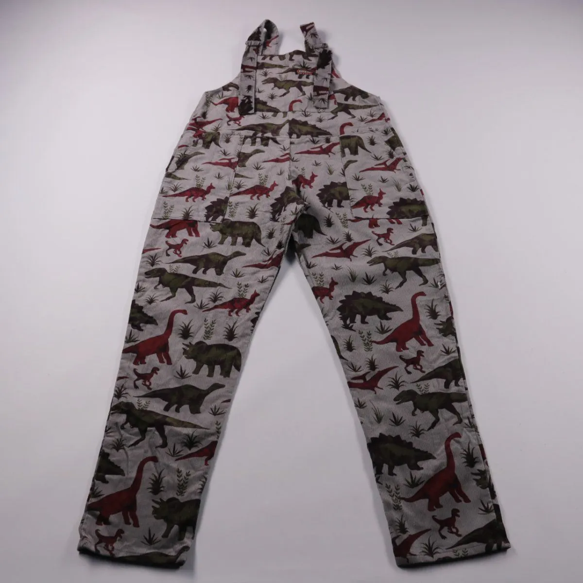 Нательный комбинезон для мальчика из 100% хлопка с принтом динозавров на сером фоне. Подойдёт для дома, сна или в детский сад в тёплое время года. Натуральная ткань мягкая и хорошо пропускает воздух.