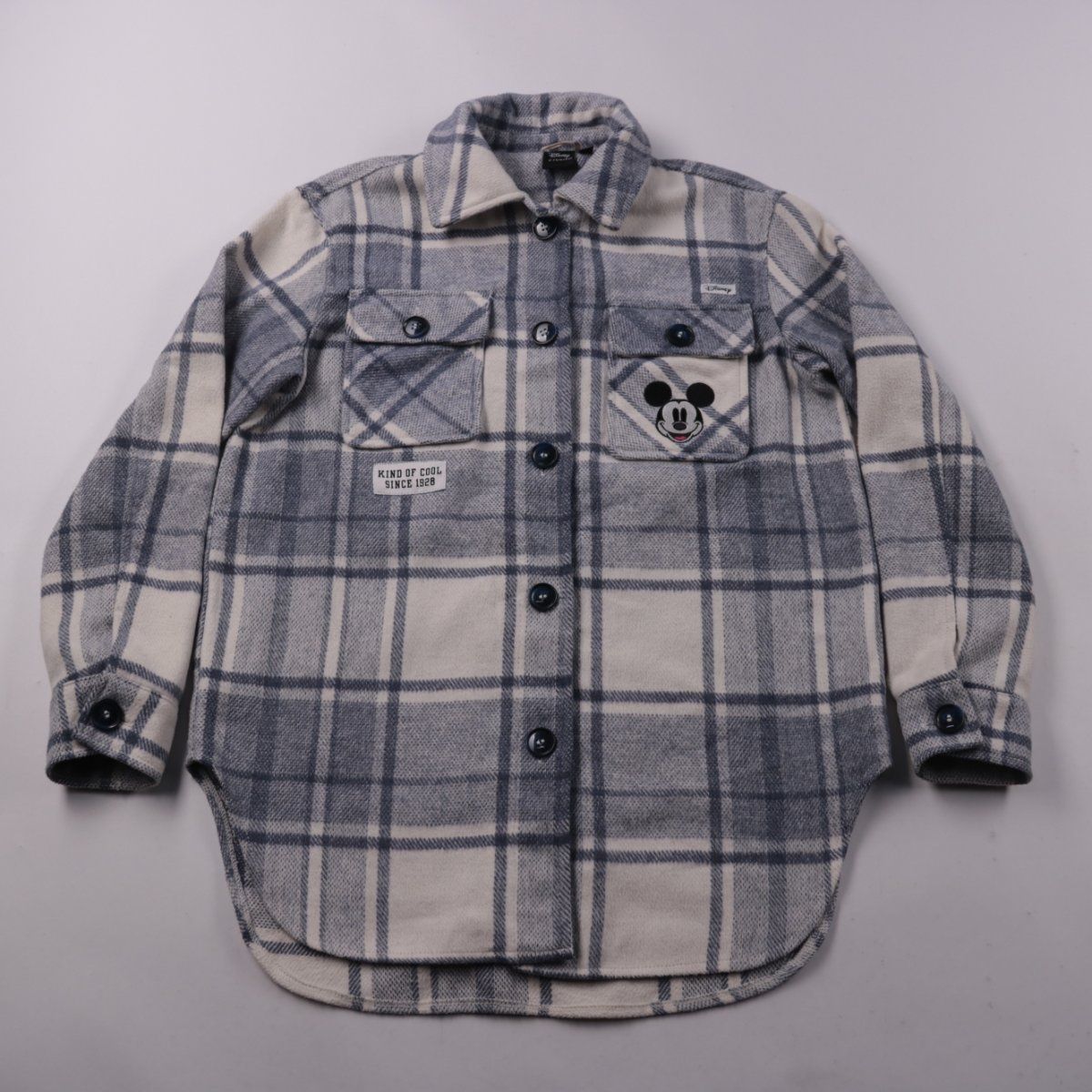 Рубашка Disney at Primark в серо-белую клетку с нашивкой Mickey и застёжкой на пуговицы. Подойдёт для прогулок и школы в прохладную погоду, можно носить как лёгкую верхнюю рубашку. Материал из полиэстера практичен в уходе и быстро сохнет.
