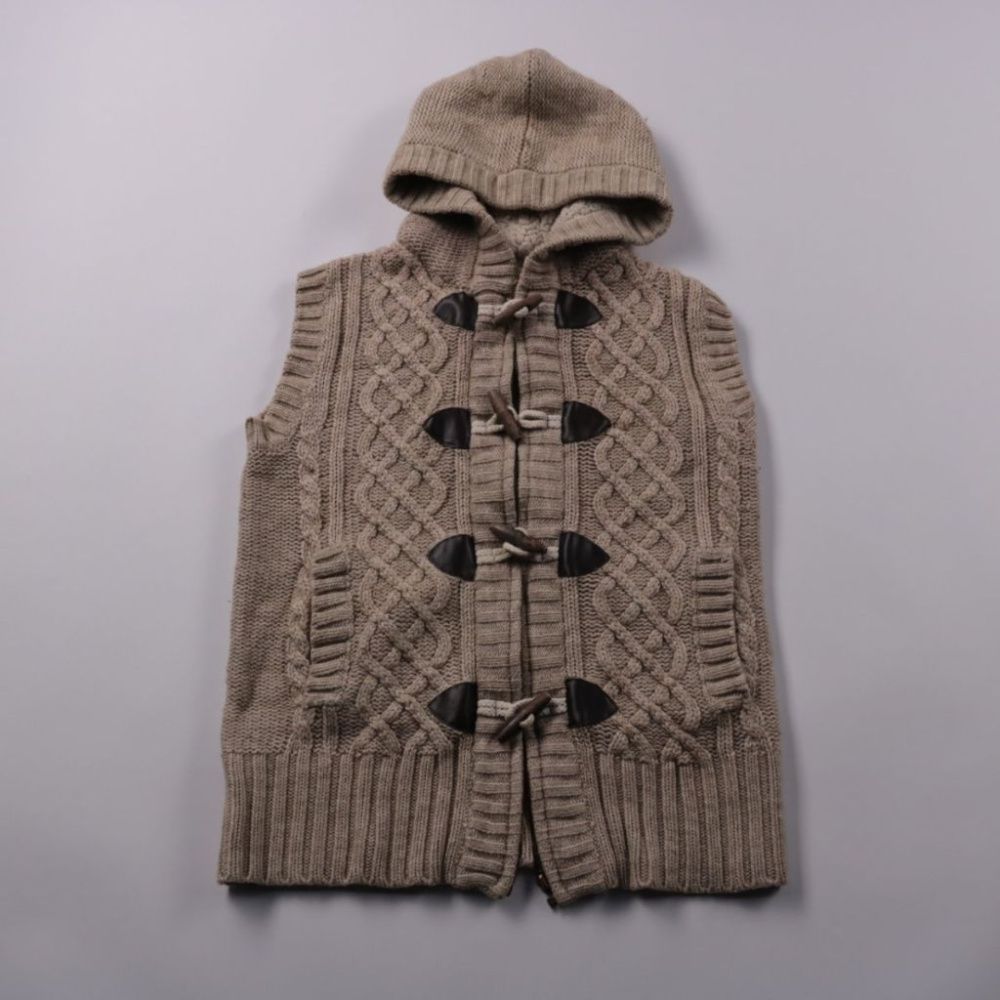 Вязаная кофта без рукавов Springfield с капюшоном и узором «косы», застёгивается на клеванты. Подойдёт для школы и прогулок в прохладную погоду, удобно надевать поверх лонгслива или рубашки. Плотная вязка хорошо держит форму и согревает.