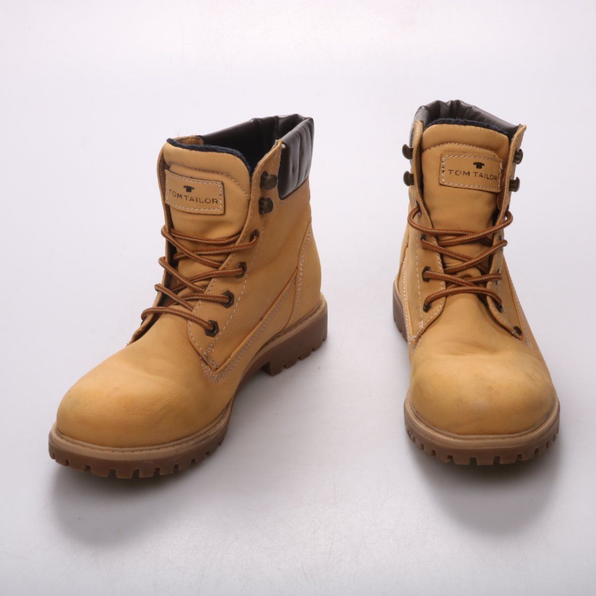 Зимние мужские ботинки Tom Tailor в бежевом цвете с высокой шнуровкой и тёплой подкладкой. Подойдут для повседневной носки в холодную погоду и прогулок по городу. Практичный плюс — массивная рельефная подошва лучше держит сцепление на скользкой поверхности.