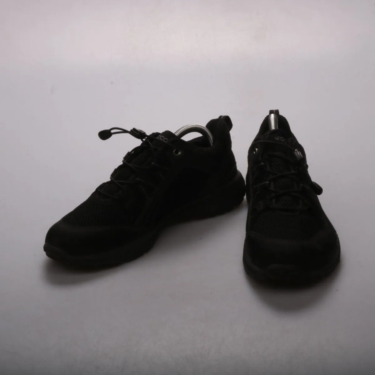 Мужские кроссовки Ecco в черном цвете с верхом из текстиля/синтетики и системой быстрой шнуровки. Подойдут для повседневной носки и прогулок в городе в теплую и межсезонную погоду. Легкая подошва с цепким протектором удобна для длительной ходьбы.