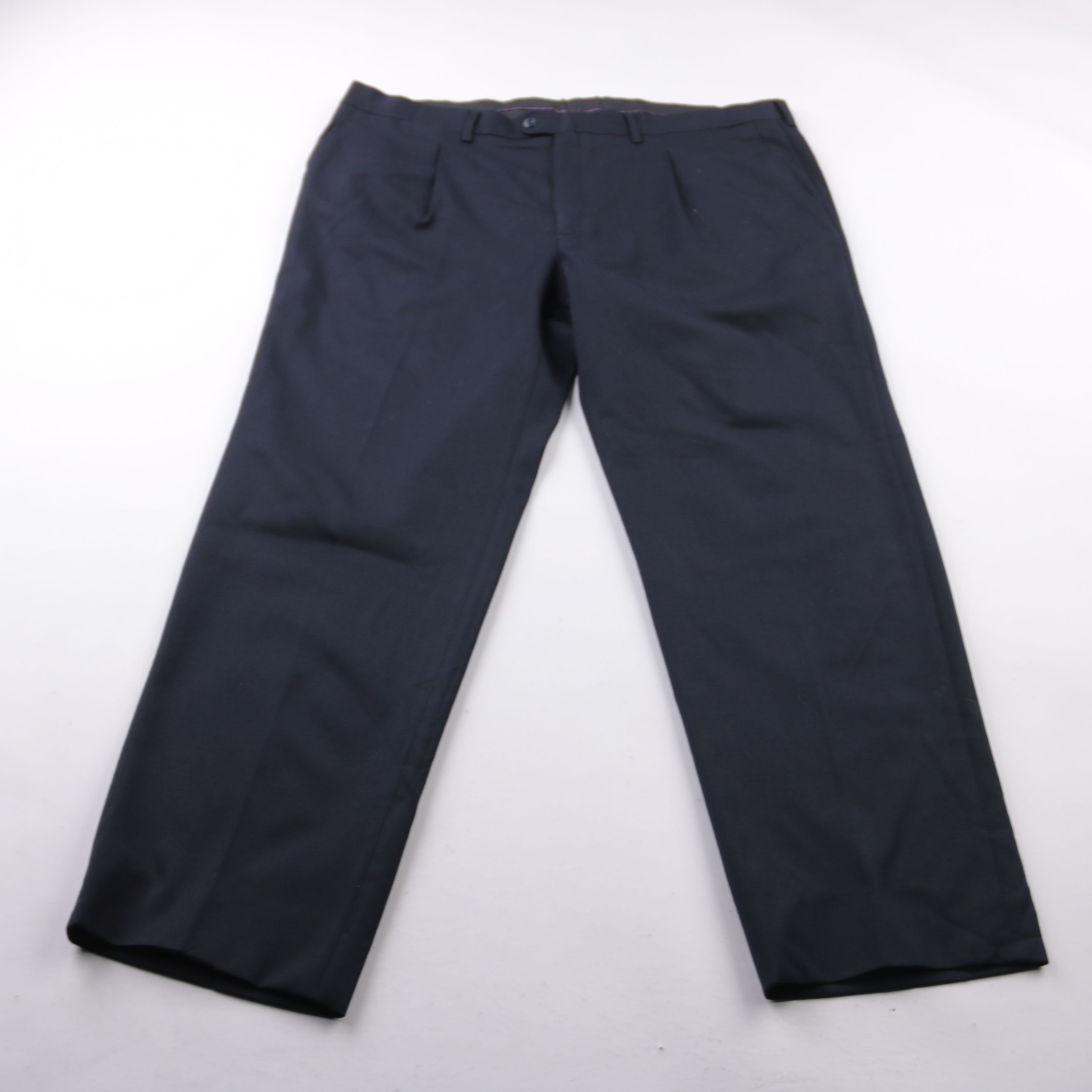 Мужские брюки Woolmark классического кроя из шерстяной ткани, тёмно-синего цвета. Подойдут для офиса и деловых мероприятий, легко сочетаются с рубашкой или пиджаком. Практичны в носке: держат форму и выглядят аккуратно.