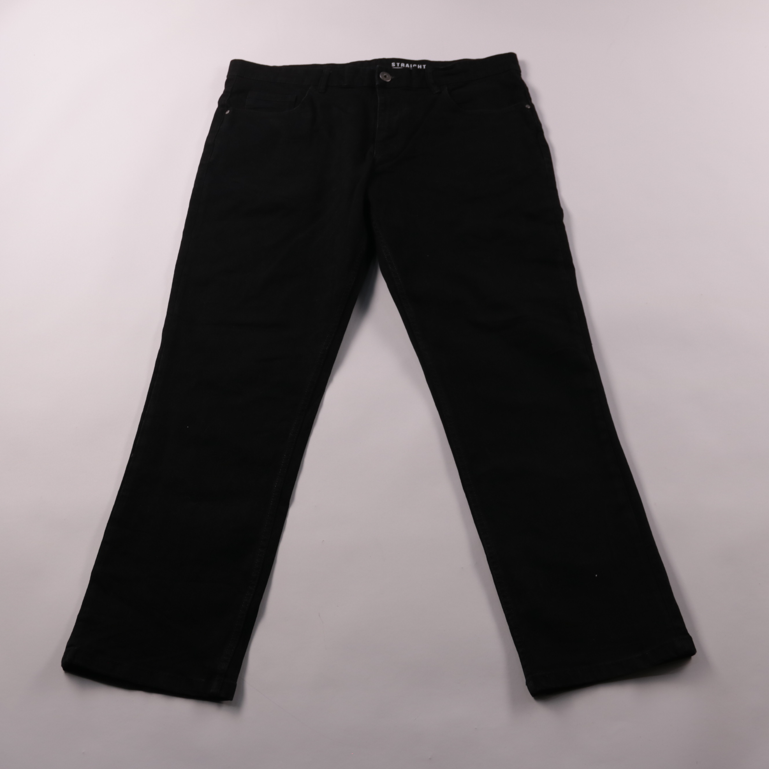 Мужские чёрные брюки H&M прямого кроя (Straight), размер 38R. Подойдут для офиса и повседневных образов благодаря лаконичному дизайну и классическому силуэту. Хлопковая ткань с добавлением эластана даёт более комфортную посадку и не сковывает движения.