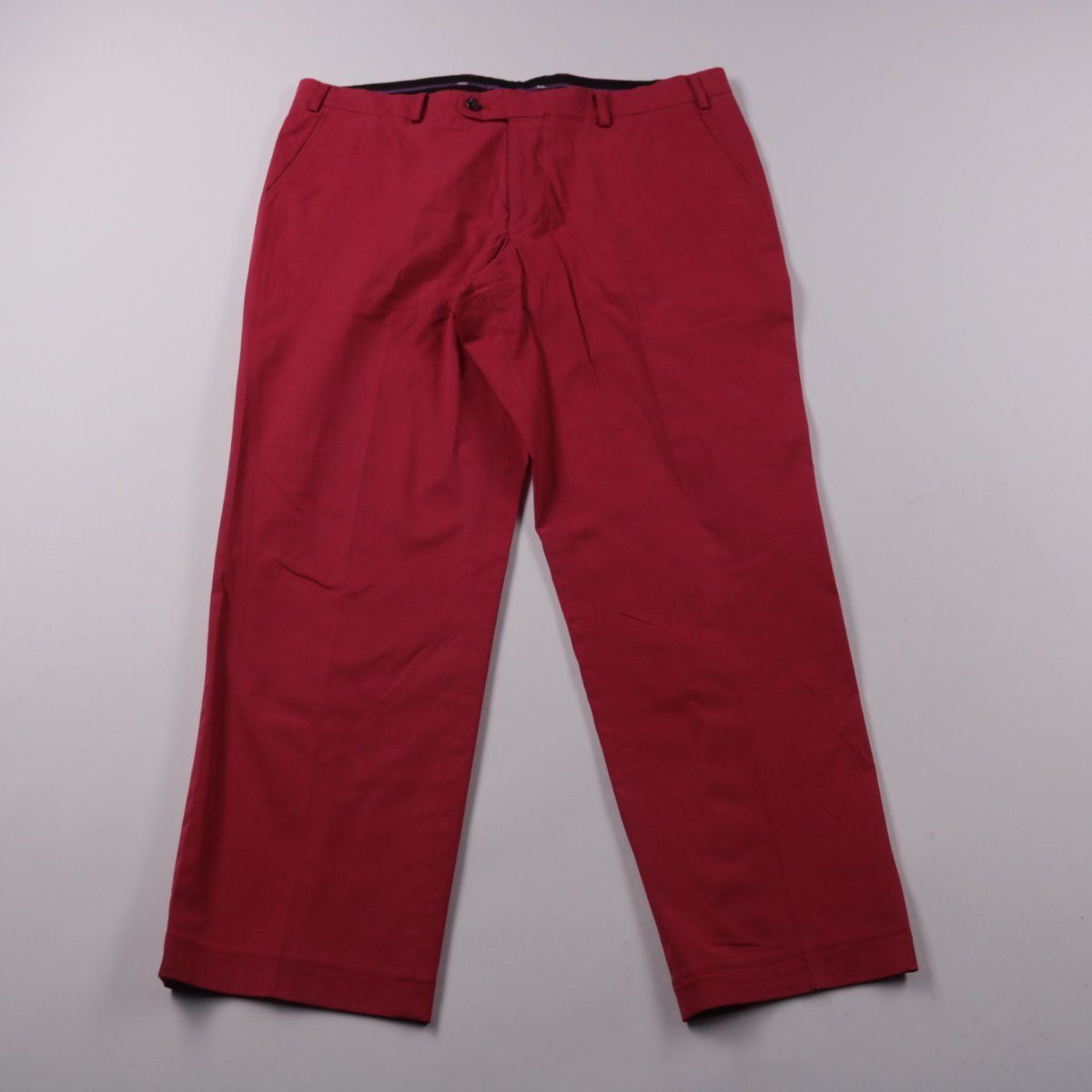 Мужские брюки Hiltl красного цвета, прямой крой с застёжкой на пуговицу и шлёвками под ремень. Подойдут для повседневных и более собранных образов в офис или на выход. Хлопковая ткань с добавлением эластана даёт комфортную посадку и меньше сковывает движения.