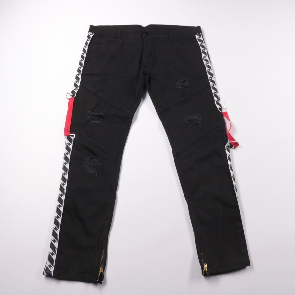 Мужские брюки с лампасами и декоративными ремешками по бокам, с молниями внизу штанин. Подойдут для повседневных образов в уличном стиле и на прохладную погоду. Тянущаяся ткань со спандексом обеспечивает более комфортную посадку.