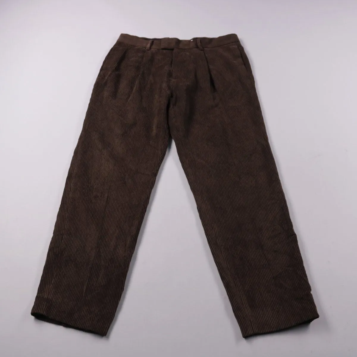 Мужские вельветовые брюки Topman коричневого цвета, прямой крой с защипами у пояса. Подойдут для повседневных и более классических образов в прохладную погоду. Плотный материал из полиэстера с добавлением нейлона меньше мнётся и легче в уходе.