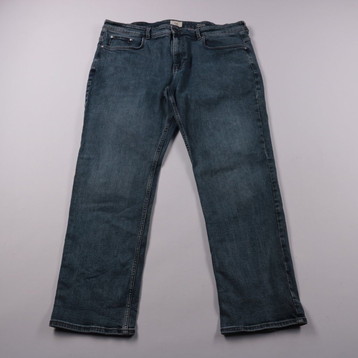 Мужские джинсы C&A прямого кроя (Straight) из синего денима. Подойдут для повседневной носки и офиса в casual-стиле, хорошо сочетаются с футболками и рубашками. За счёт добавления эластана ткань чуть тянется и комфортнее сидит в движении.