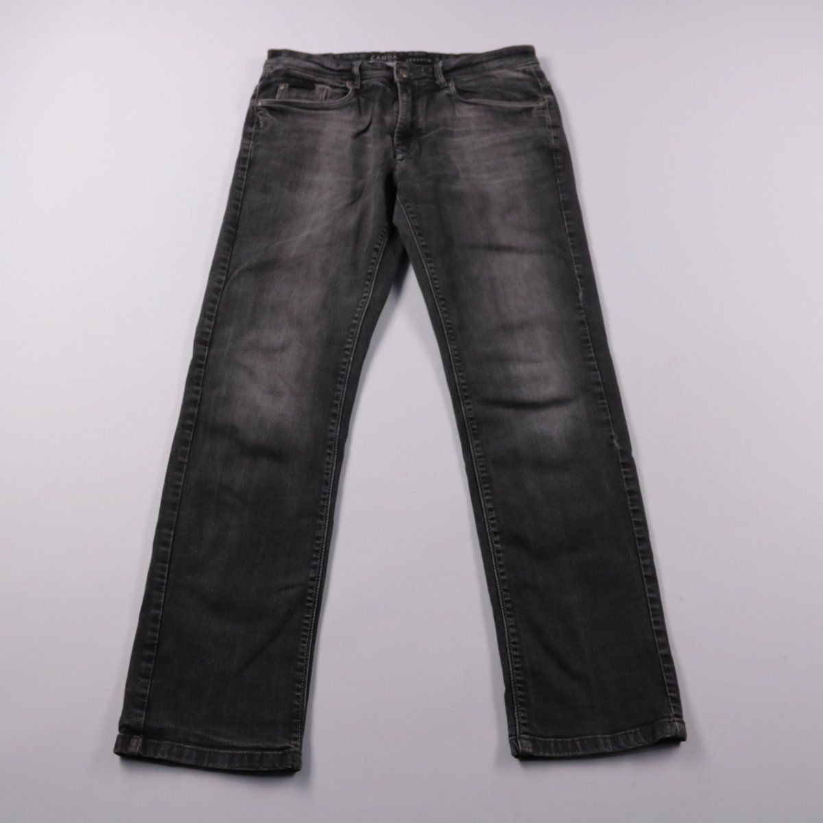 Мужские джинсы C&A из чёрного денима со стрейчем (W34/L32), комфортно садятся по фигуре и не сковывают движения. Подойдут для повседневной носки в городе и на работу, легко сочетаются с футболками и рубашками. Практичный плюс — эластичная ткань и универсальный тёмный цвет, который меньше маркируется.
