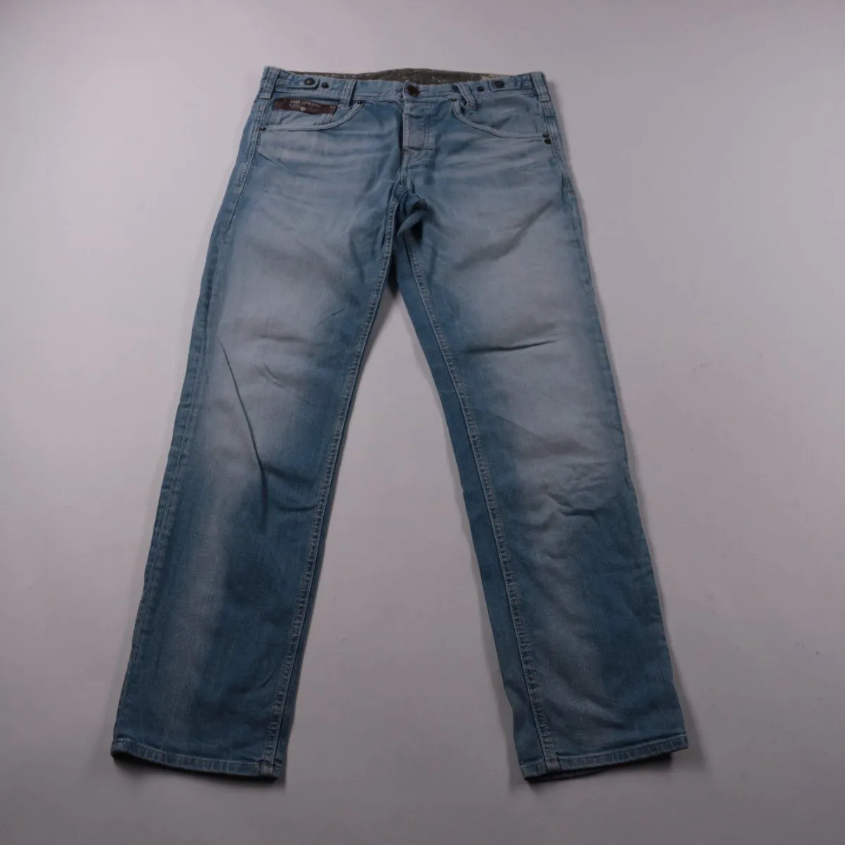 Мужские джинсы PME Legend светло-голубого цвета с лёгким эффектом потертостей. Подойдут для повседневной носки и casual-образов в тёплый сезон и межсезонье. Благодаря эластану в составе ткань немного тянется и удобнее садится по фигуре.