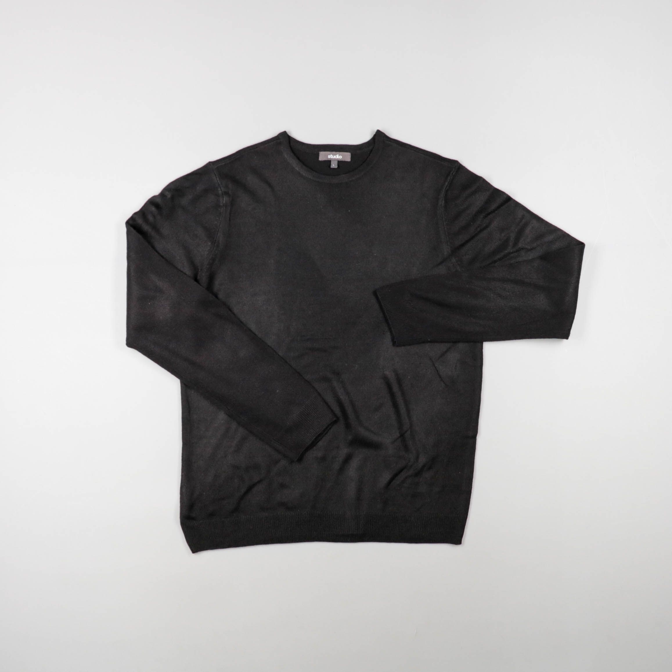 Мужской джемпер Studio чёрного цвета с круглым вырезом и длинным рукавом. Подойдёт для повседневных образов и офиса, удобно носить как самостоятельный верх или слоем под куртку. Практичный базовый цвет легко сочетается с джинсами и брюками.