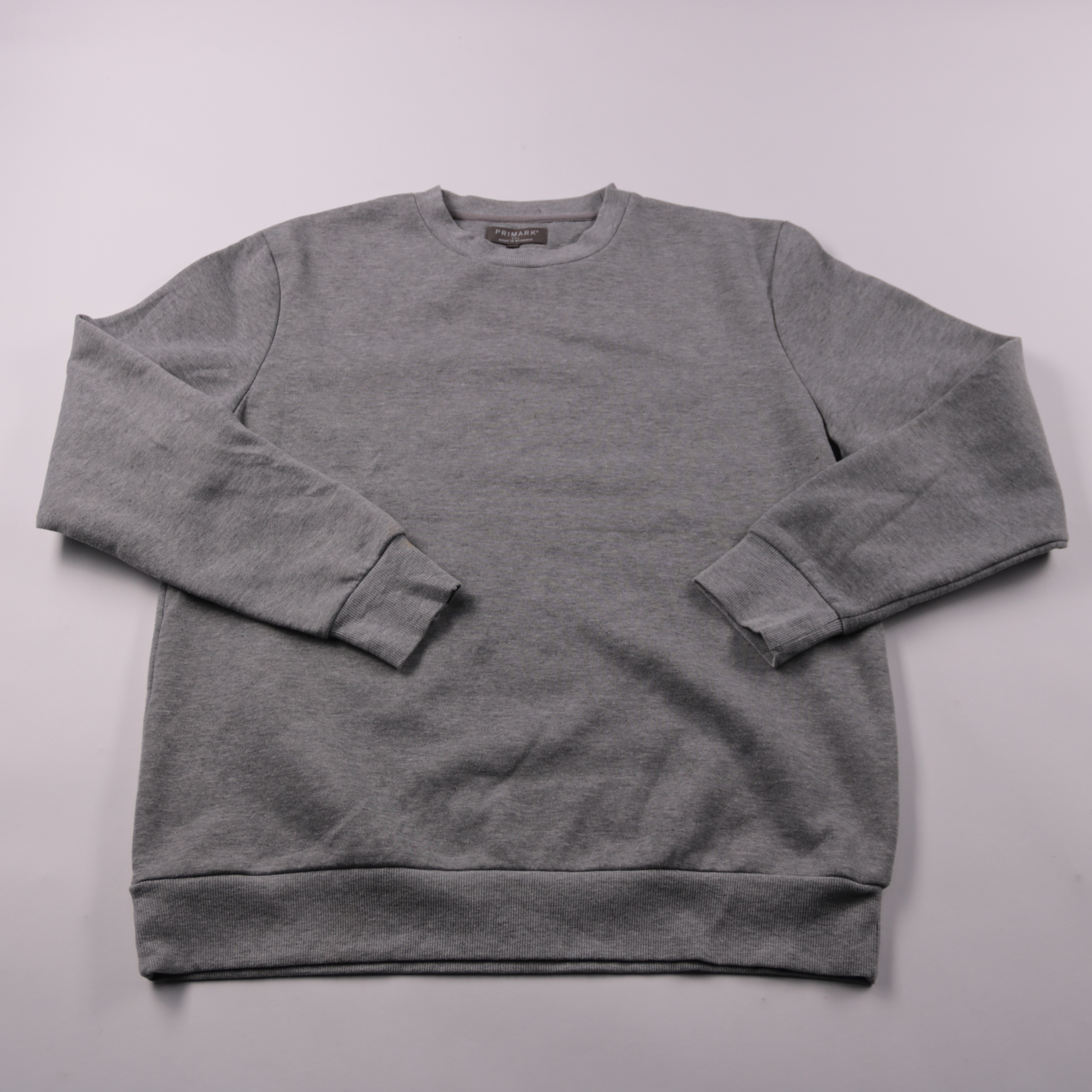 Мужской свитшот Primark серого меланжа с круглым вырезом и манжетами. Подойдёт для повседневной носки и домашнего отдыха, легко сочетается с джинсами и спортивными брюками. Смесовый состав делает ткань практичной и простой в уходе.