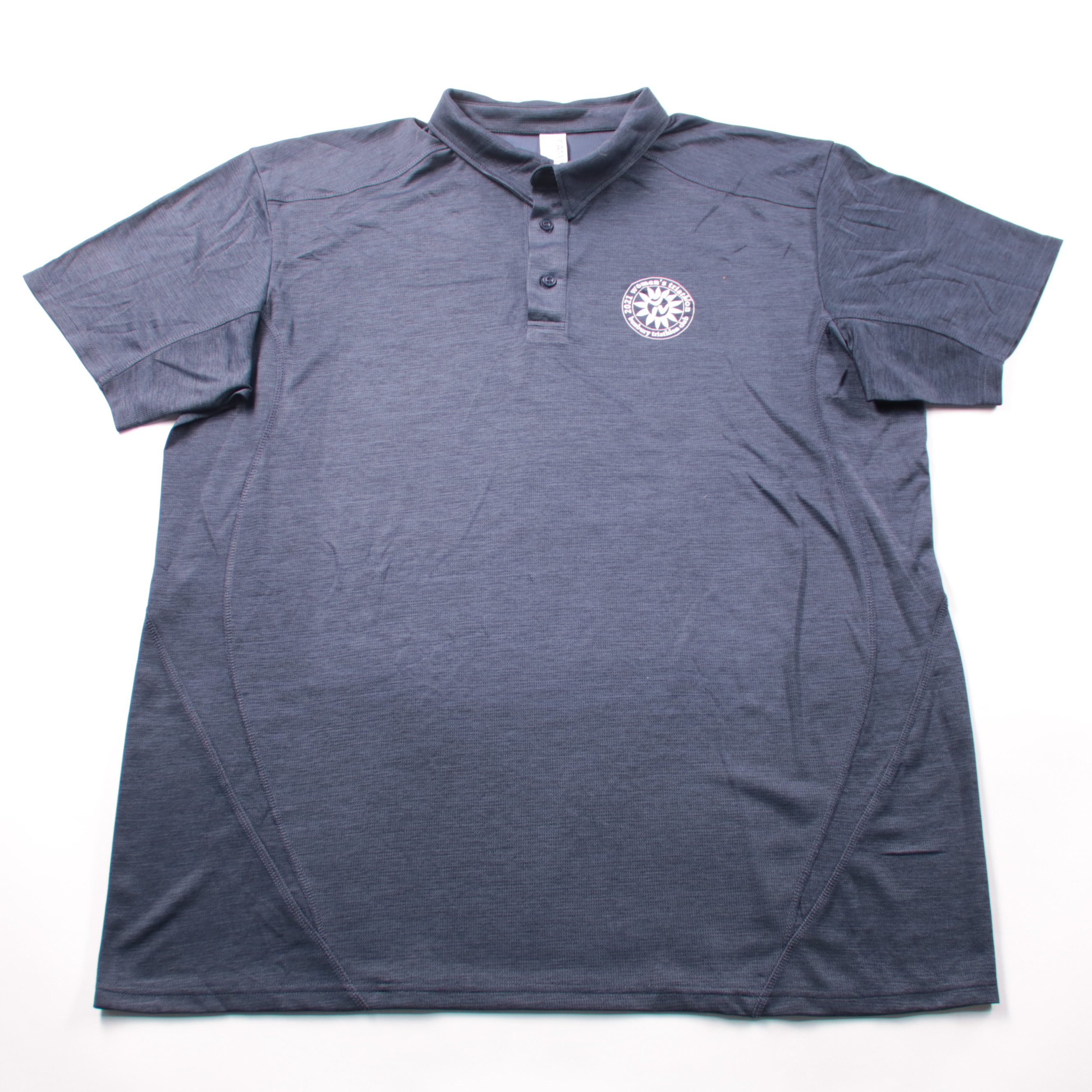 Мужское поло Ramo тёмно-синего цвета из 100% полиэстера, с коротким рукавом и небольшой эмблемой на груди. Подойдёт для повседневной носки и работы/мероприятий с дресс-кодом casual. Материал лёгкий, быстро сохнет и неприхотлив в уходе.