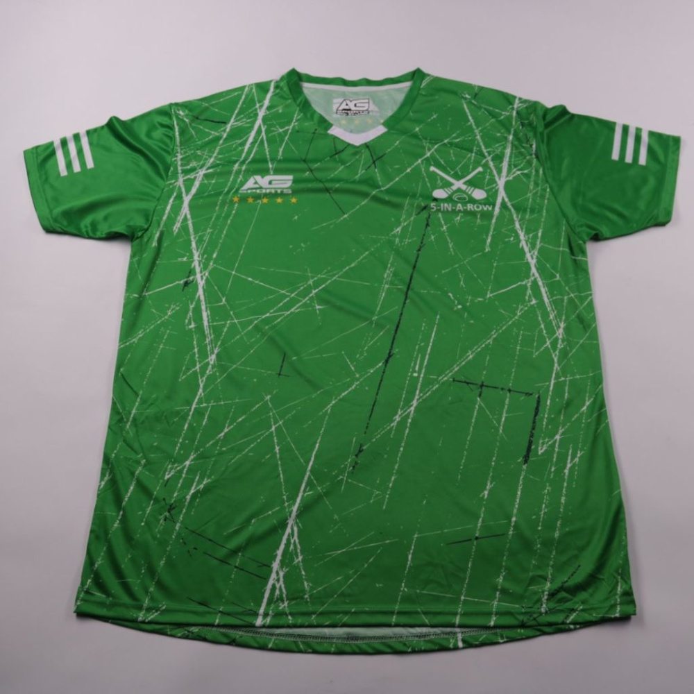 Спортивная футболка AG Sports зелёного цвета с принтом и V-образным вырезом. Подойдёт для тренировок и активного отдыха, лёгкая синтетическая ткань быстро сохнет и не сковывает движения.