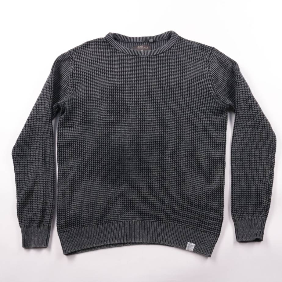 Мужской джемпер Jean Pascale из фактурного трикотажа, спокойный тёмно-серый оттенок. Подойдёт для повседневной носки и офиса в прохладную погоду, легко сочетается с джинсами и брюками. Практичный плюс — плотная вязка и эластичные манжеты/низ держат фор...