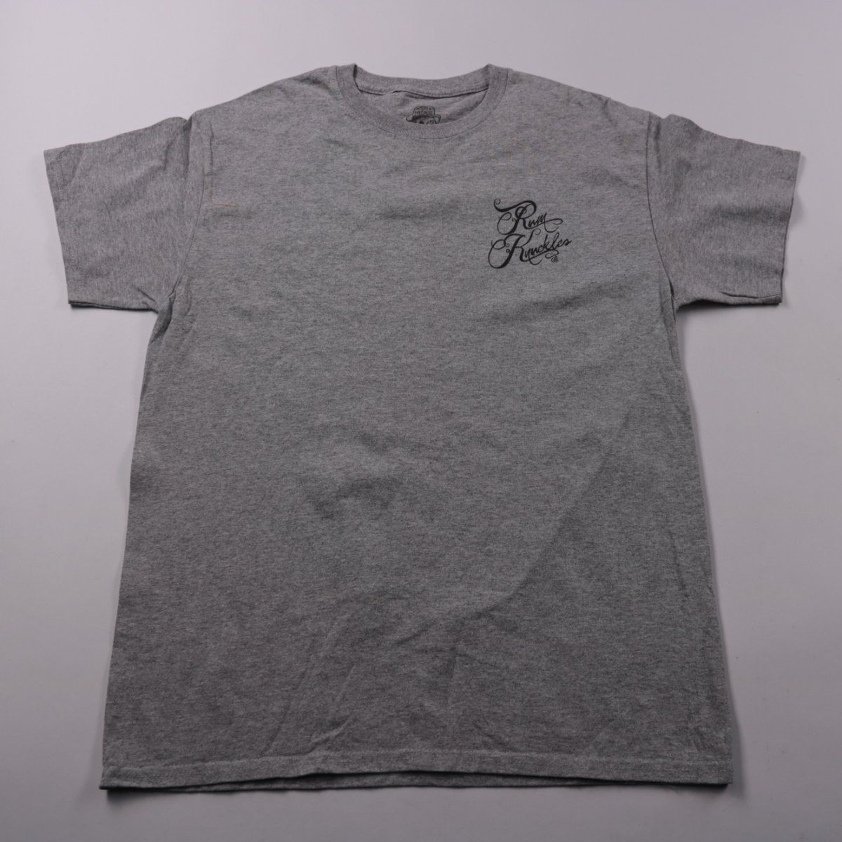 Мужская футболка Punk Drunkers серого меланжа с небольшим принтом на груди и крупным рисунком на спине. Подойдёт для повседневной носки и уличного стиля, легко сочетается с джинсами и шортами. Практичный плюс — хлопковый материал приятен к телу и хорошо дышит.