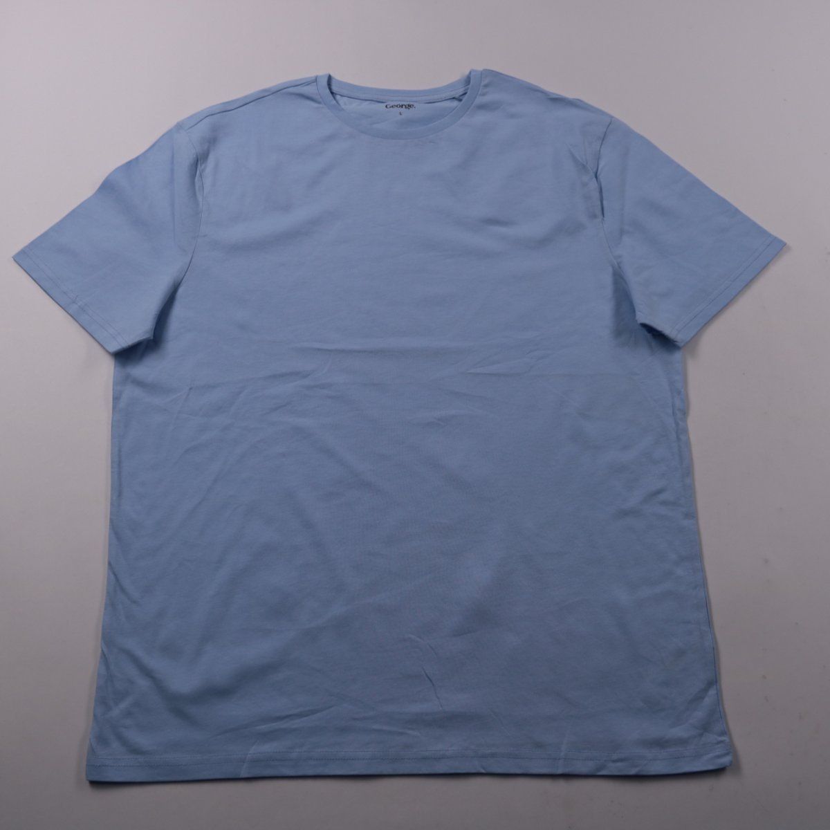 Мужская футболка George базового кроя с круглым вырезом, однотонная светло-голубая. Подойдёт для повседневной носки, дома и как нижний слой под рубашку или худи. Натуральный хлопок хорошо дышит и комфортен в жаркую погоду.