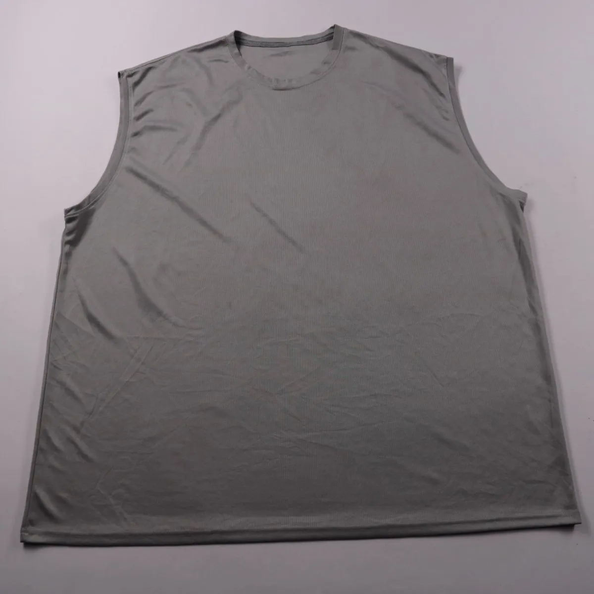 Мужская майка без рукавов светло-серого цвета, без принта. Подойдёт для тренировок, дома или как базовый слой в жаркую погоду. Лёгкий материал быстро сохнет и не стесняет движений.