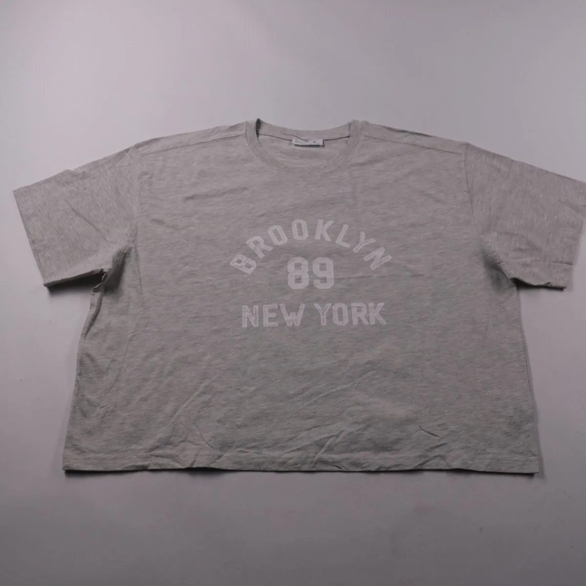 Футболка Primark серого меланжа с принтом «Brooklyn 89 New York» и круглым вырезом. Подойдёт для повседневной носки и прогулок, легко сочетается с джинсами и шортами. Хлопковая ткань хорошо дышит и комфортна в течение дня.