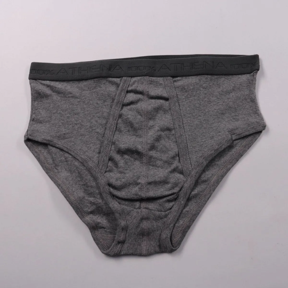 Мужские трусы-слипы Athena из хлопка, серого цвета с широкой брендированной резинкой. Подойдут на каждый день и для поездок, хорошо сидят под джинсами и классическими брюками. Натуральный материал дышит и комфортен при длительной носке.