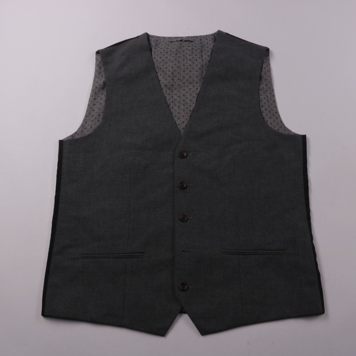 Классический костюмный жилет Next Tailoring тёмно-серого (графитового) цвета с V-образным вырезом и застёжкой на пуговицы. Подойдёт для офиса, деловых встреч и мероприятий — можно носить как самостоятельный слой или под пиджак. Практичен тем, что добавляет образу строгости и аккуратно садится по фигуре.