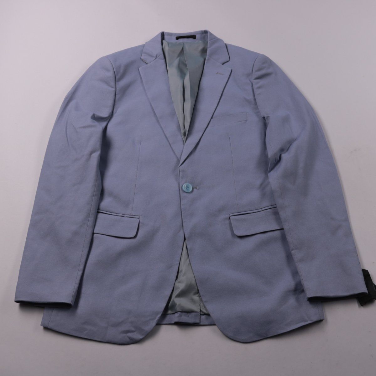 Мужской однобортный пиджак светло-голубого цвета с одной пуговицей и прорезными карманами с клапанами. Подойдёт для офиса и мероприятий, легко сочетается с брюками и джинсами. Ткань со стрейчем, поэтому пиджак комфортнее в движении.
