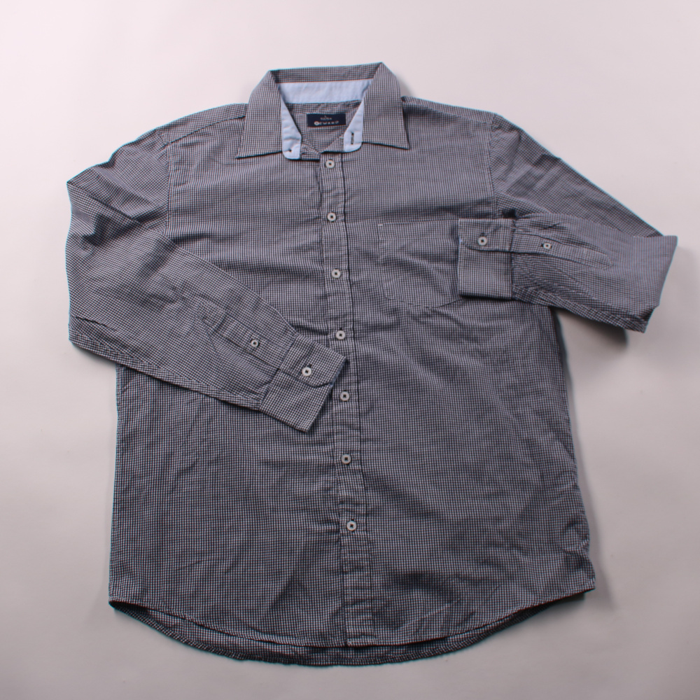 Мужская рубашка Reward в мелкую клетку, с длинным рукавом и застёжкой на пуговицы. Подойдёт для офиса и повседневной носки с джинсами или брюками. Смесовая ткань проще в уходе и меньше мнётся.
