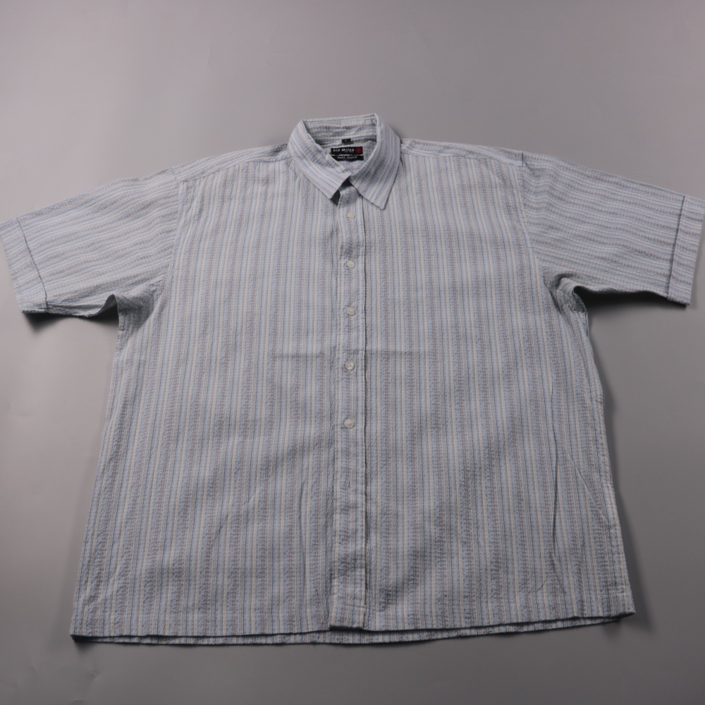 Мужская рубашка Old Milan в светло-голубую полоску с коротким рукавом и классическим воротником. Подойдёт для повседневных летних образов и офиса без строгого дресс-кода. Смесовая ткань (хлопок/полиэстер) меньше мнётся и проще в уходе.