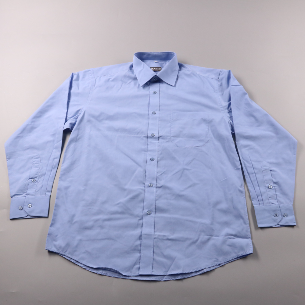 Мужская рубашка Basic Concept светло-голубого цвета с длинным рукавом и нагрудным карманом. Подойдёт для офиса и повседневных образов, легко сочетается с брюками и джинсами. Смесовая ткань с хлопком менее мнётся и проще в уходе.