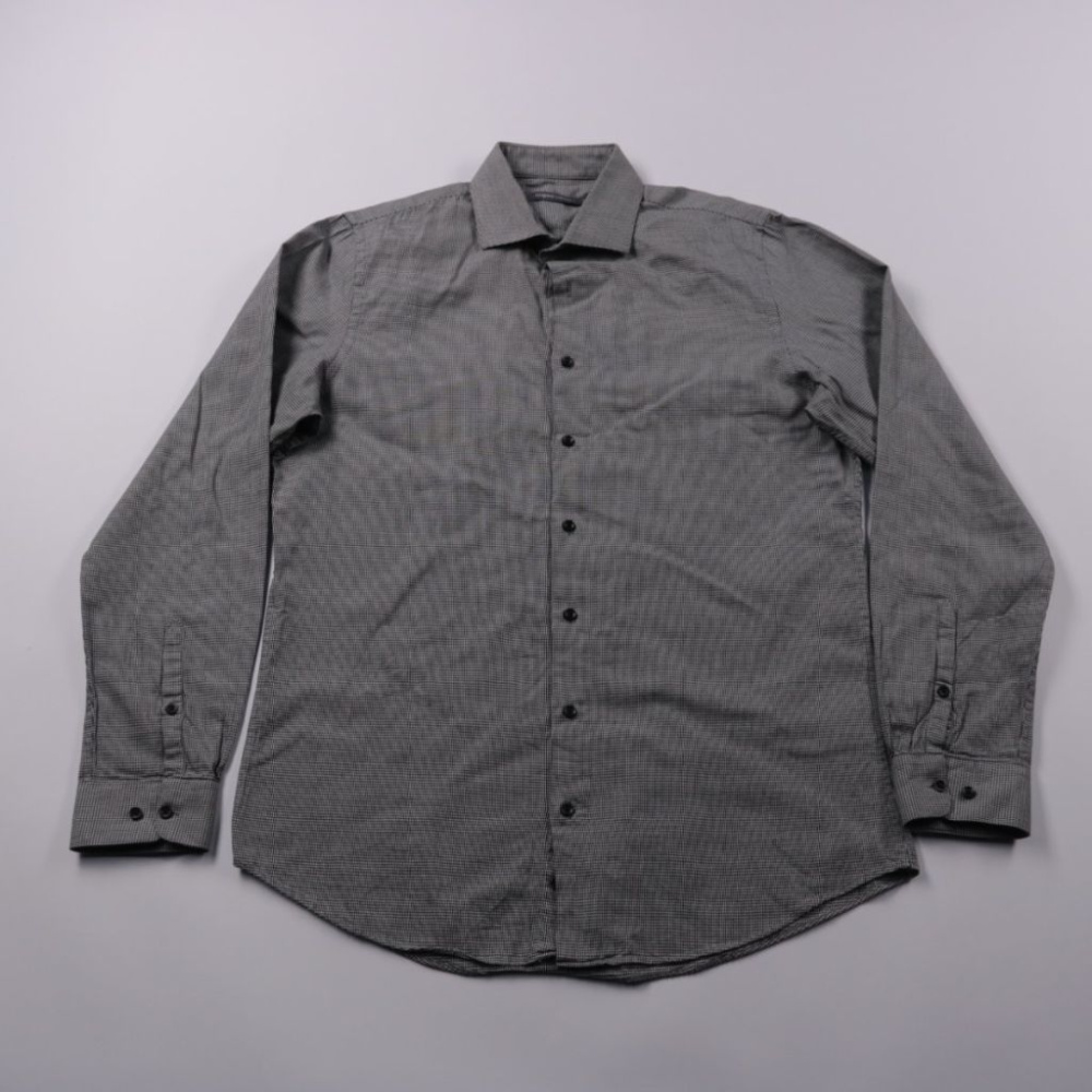 Мужская рубашка Angelo Litrico в мелкую клетку, с длинным рукавом и классическим воротником. Подойдёт для офиса и повседневных образов, легко сочетается с брюками и джинсами. Натуральный хлопок хорошо дышит и комфортен в носке.