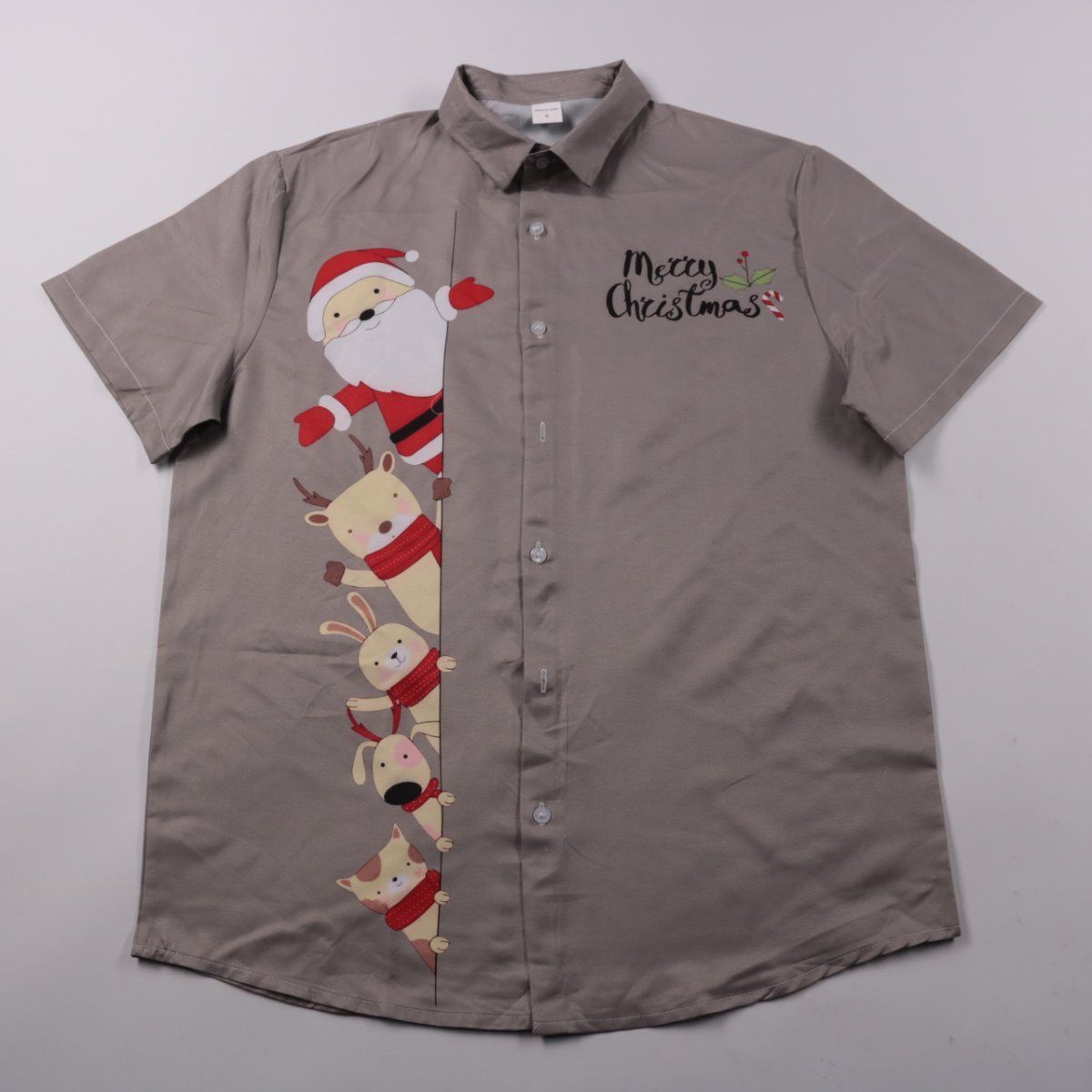 Мужская рубашка с коротким рукавом с новогодним принтом и надписью Merry Christmas. Подойдёт для праздничных встреч, корпоративов и тематических вечеринок. Лёгкая ткань из полиэстера быстро сохнет и почти не мнётся.