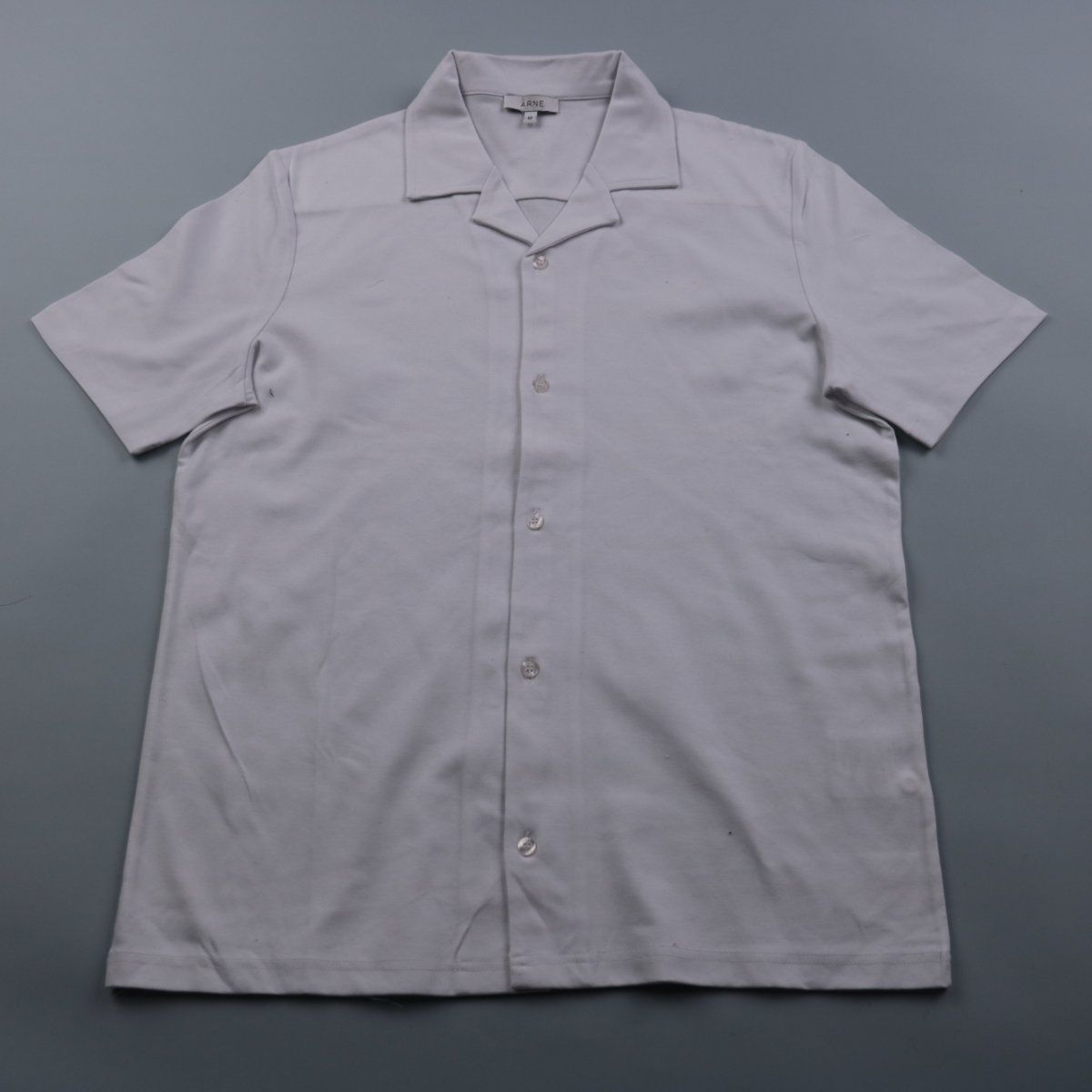 Мужская рубашка ARNE с коротким рукавом и отложным воротником, однотонная светло-серая. Подойдёт для лета и повседневных образов в городе или на отдыхе. Ткань с добавлением эластана немного тянется и комфортна в носке.