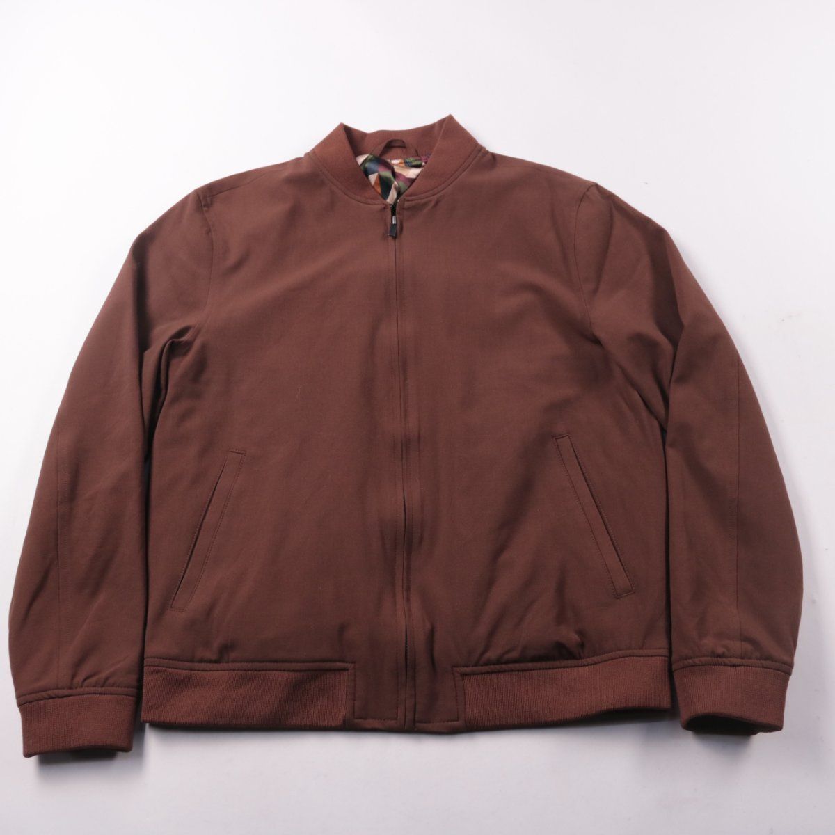 Мужской бомбер Next Tailoring коричневого цвета на молнии, с воротником-стойкой и трикотажными манжетами. Подойдёт для повседневной носки в прохладную погоду и в межсезонье. Практичный плюс — боковые карманы и эластичный низ, который держит форму.