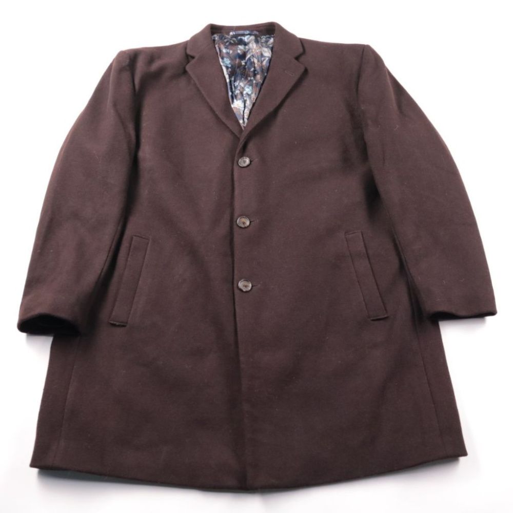 Мужское пальто Next тёмно-коричневого цвета с классическим отложным воротником и застёжкой на пуговицы. Подойдёт для офиса и повседневных выходов в прохладную погоду, легко сочетается с джинсами и брюками. Практичный материал с подкладкой, удобно носит...