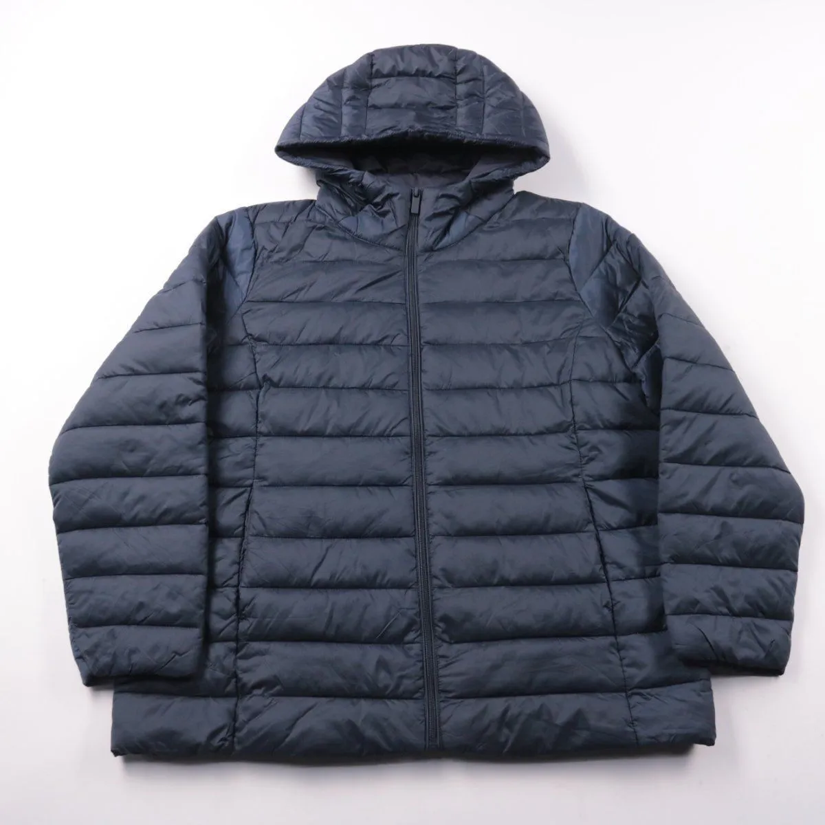 Стёганая куртка C&A тёмно-синего цвета с капюшоном и застёжкой на молнию. Подойдёт для повседневной носки в прохладную погоду, удобно носить с джинсами и кроссовками. Лёгкая и машинная стирка, практичная в уходе.
