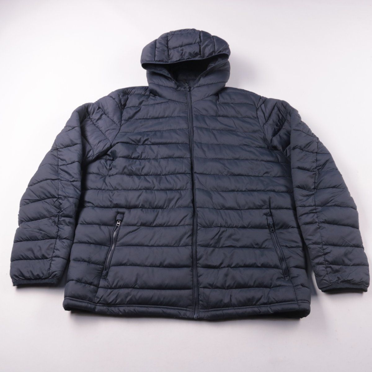 Стёганая зимняя куртка Dunnes Stores тёмно-синего цвета с капюшоном и застёжкой на молнию. Подойдёт для повседневной носки в холодную погоду. Есть боковые карманы на молнии, удобно носить мелочи и держать руки в тепле.