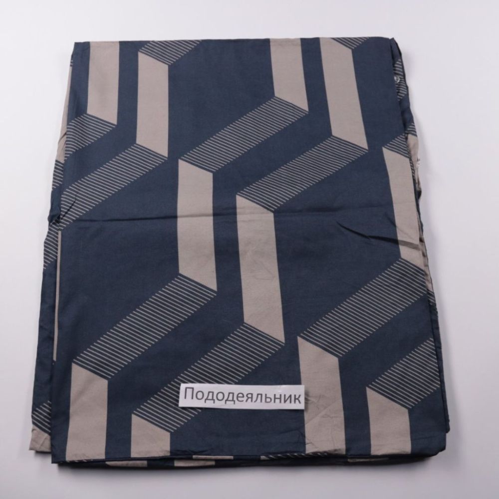 Пододеяльник с геометрическим принтом в сине-серых тонах, подойдёт для спальни в современном стиле. Уместен для повседневного использования дома или на даче. Легко сочетается с однотонными простынями и наволочками и помогает быстро освежить вид постели.