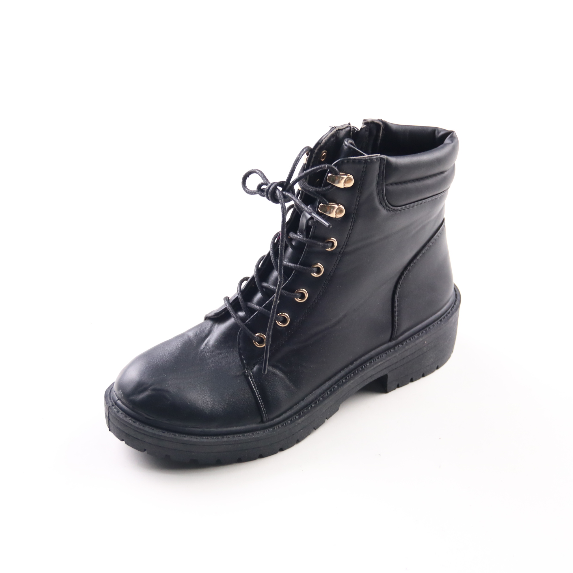 Ботинки Studio из искусственной кожи, чёрные, на шнуровке с боковой молнией и золотистой фурнитурой. Подойдут для повседневных образов в прохладную погоду и прогулок по городу. Рельефная подошва даёт устойчивость и хорошее сцепление.