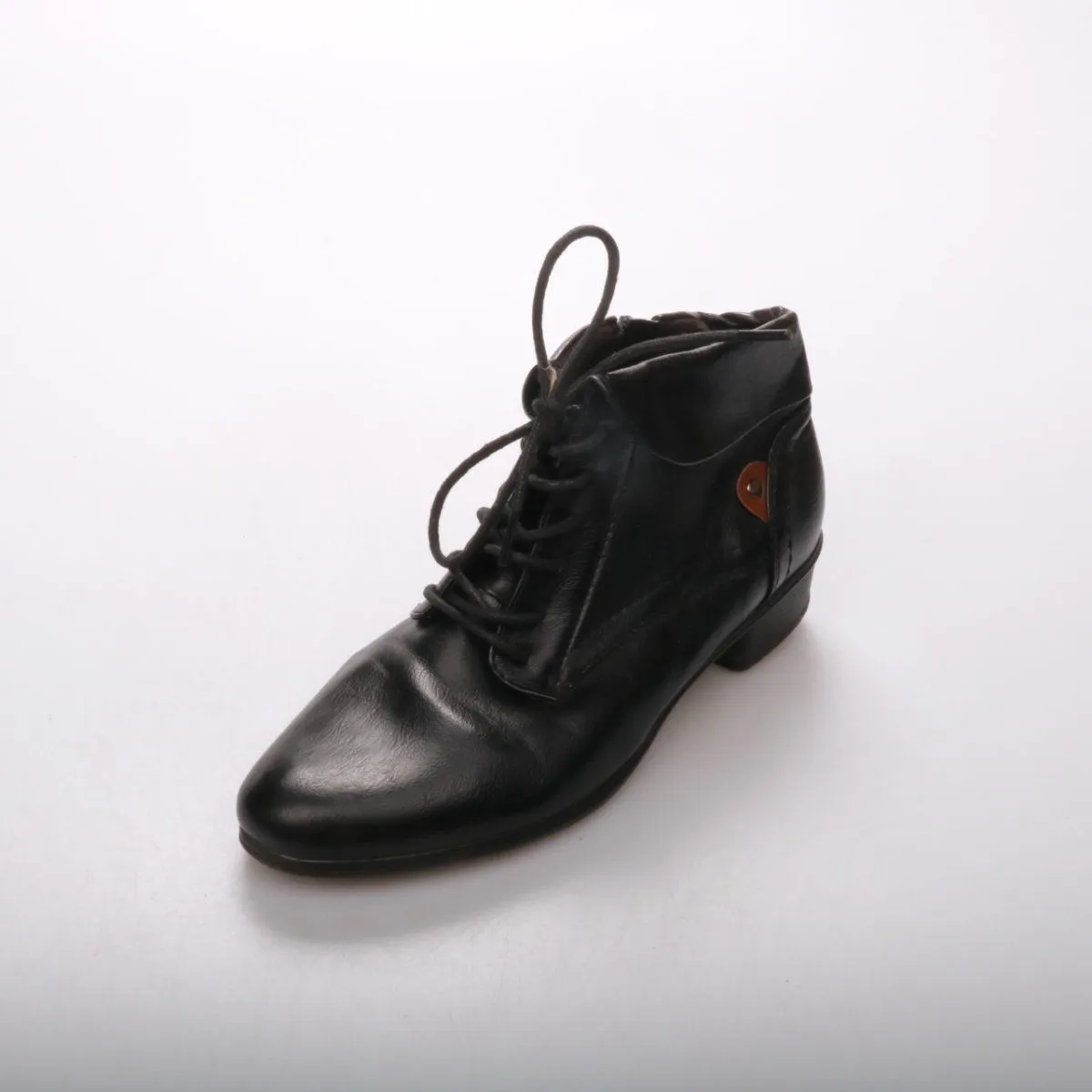 Мужские ботинки из чёрной кожи на шнуровке, с боковой молнией для удобного надевания. Подойдут для повседневной носки в межсезонье и под классические брюки или джинсы. Практичный плюс — устойчивый низкий каблук и рельефная подошва.