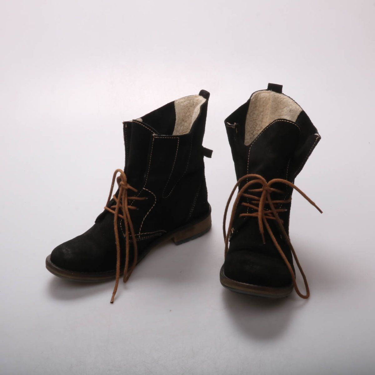 Женские ботинки Tamaris из чёрной замши на шнуровке, с тёплой подкладкой из искусственного меха. Подойдут для повседневной носки в холодную погоду и прогулок. Практичный плюс — устойчивая подошва с протектором и невысокий каблук.