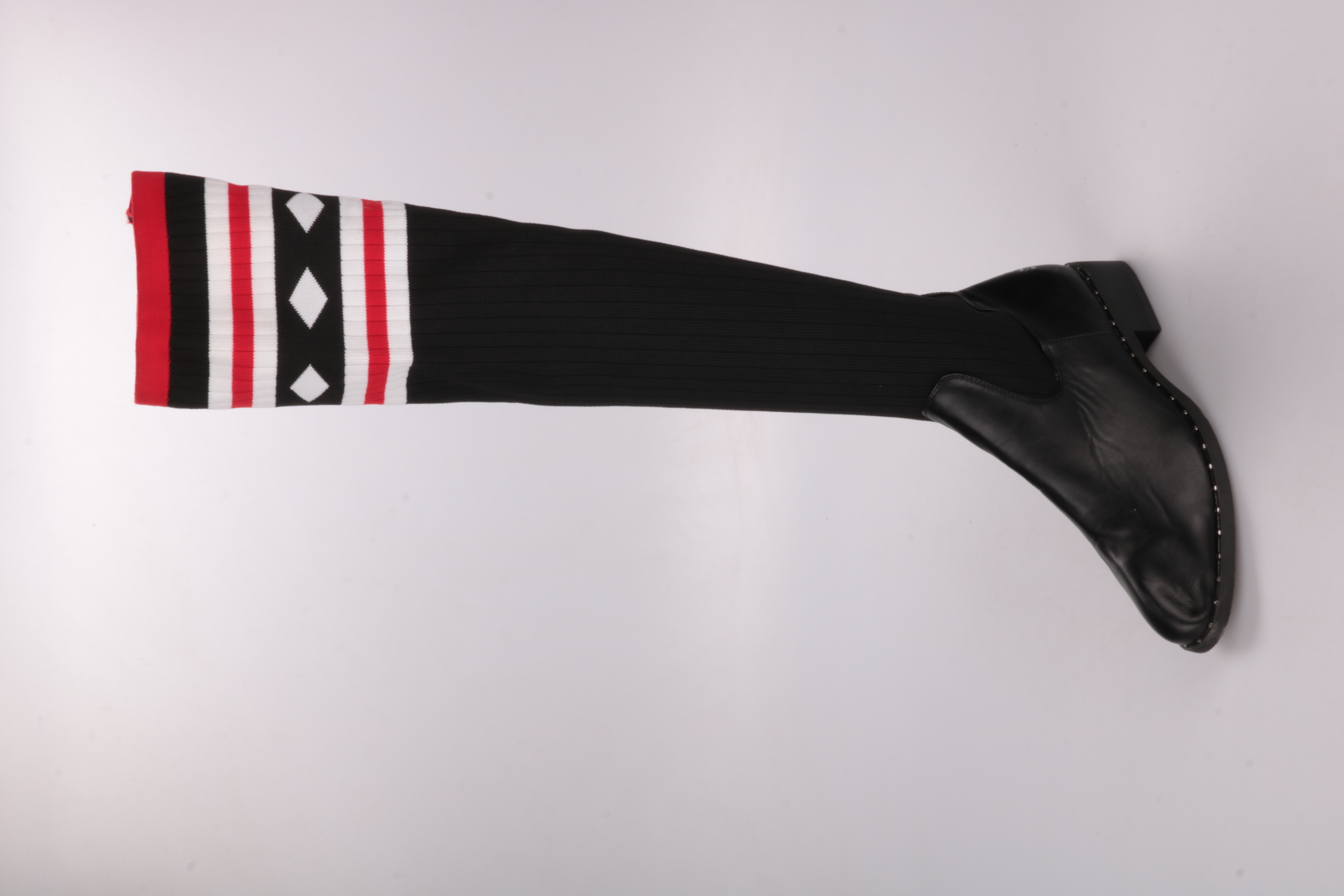 Женские сапоги-ботфорты с эластичным текстильным голенищем «носок» и кожаным низом на устойчивом невысоком каблуке. Подойдут для городских образов в демисезон, легко сочетаются с платьями, юбками и узкими джинсами. Эластичное голенище хорошо облегает н...
