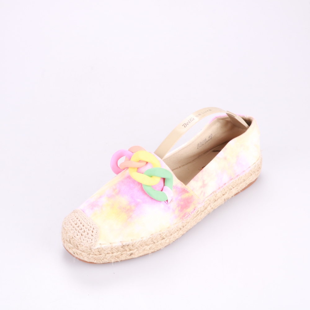 Женские эспадрильи Marquiz с пастельным tie-dye верхом и декором в виде крупной цепочки. Подойдут для лета и отпуска, к платьям, шортам и льняным брюкам. Лёгкая джутовая окантовка и плоская подошва удобны для прогулок.